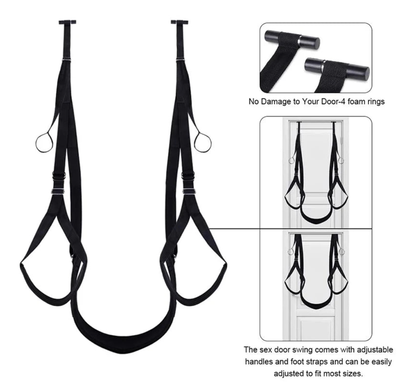 Turn any sturdy door into your private playground with this Over-the-Door Sex Swing. This easy-to-install sex sling attaches securely over the top of a closed door — no drilling, no permanent hardware, and no damage to your door thanks to the protective foam padding on the top bars.