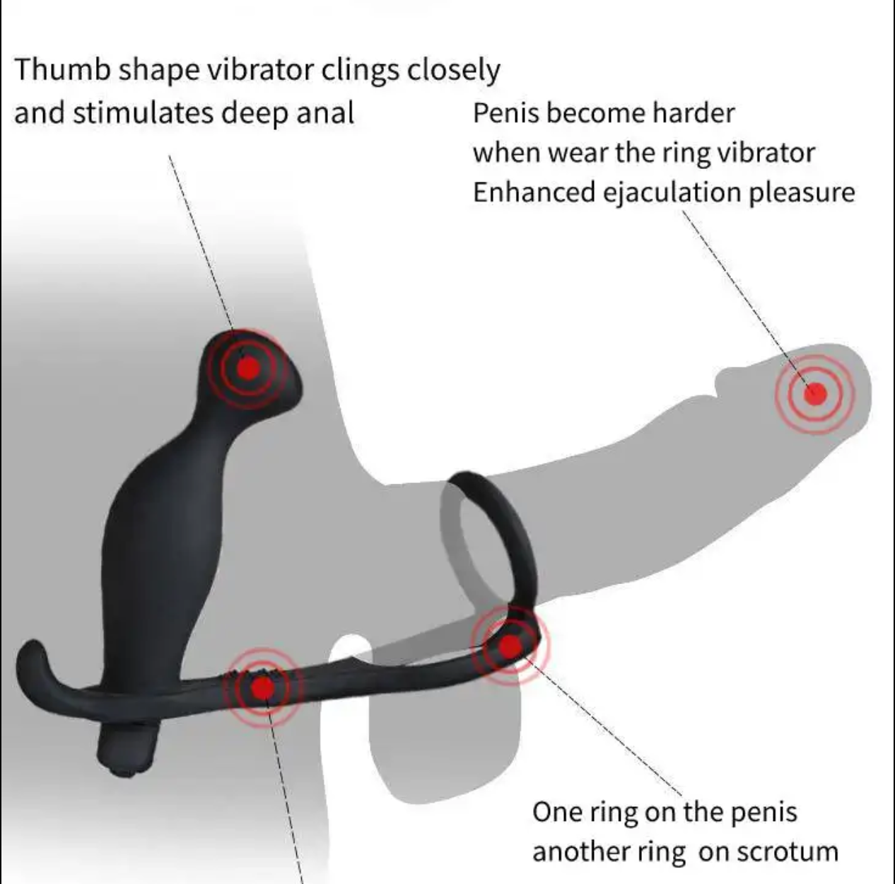 • Features: Dual rings (penis + scrotum), vibrating prostate plug, thumb-shaped design