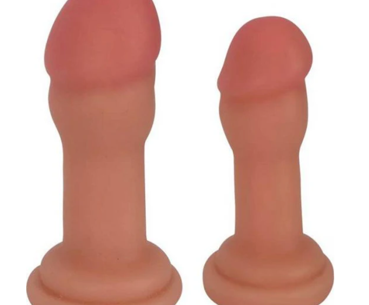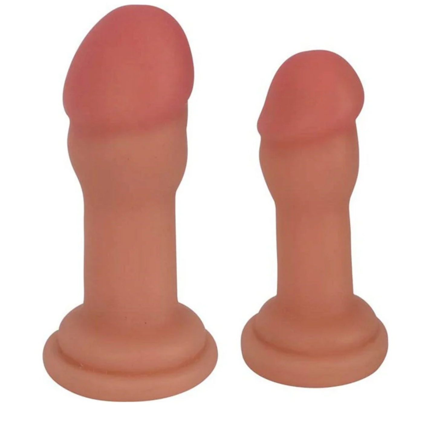 Both plugs have a tapered, realistic glans shape for comfortable insertion, a thick shaft, and a wide flared base that doubles as a strong suction cup. The bases are also harness compatible, making them perfect for strap-on or pegging play.