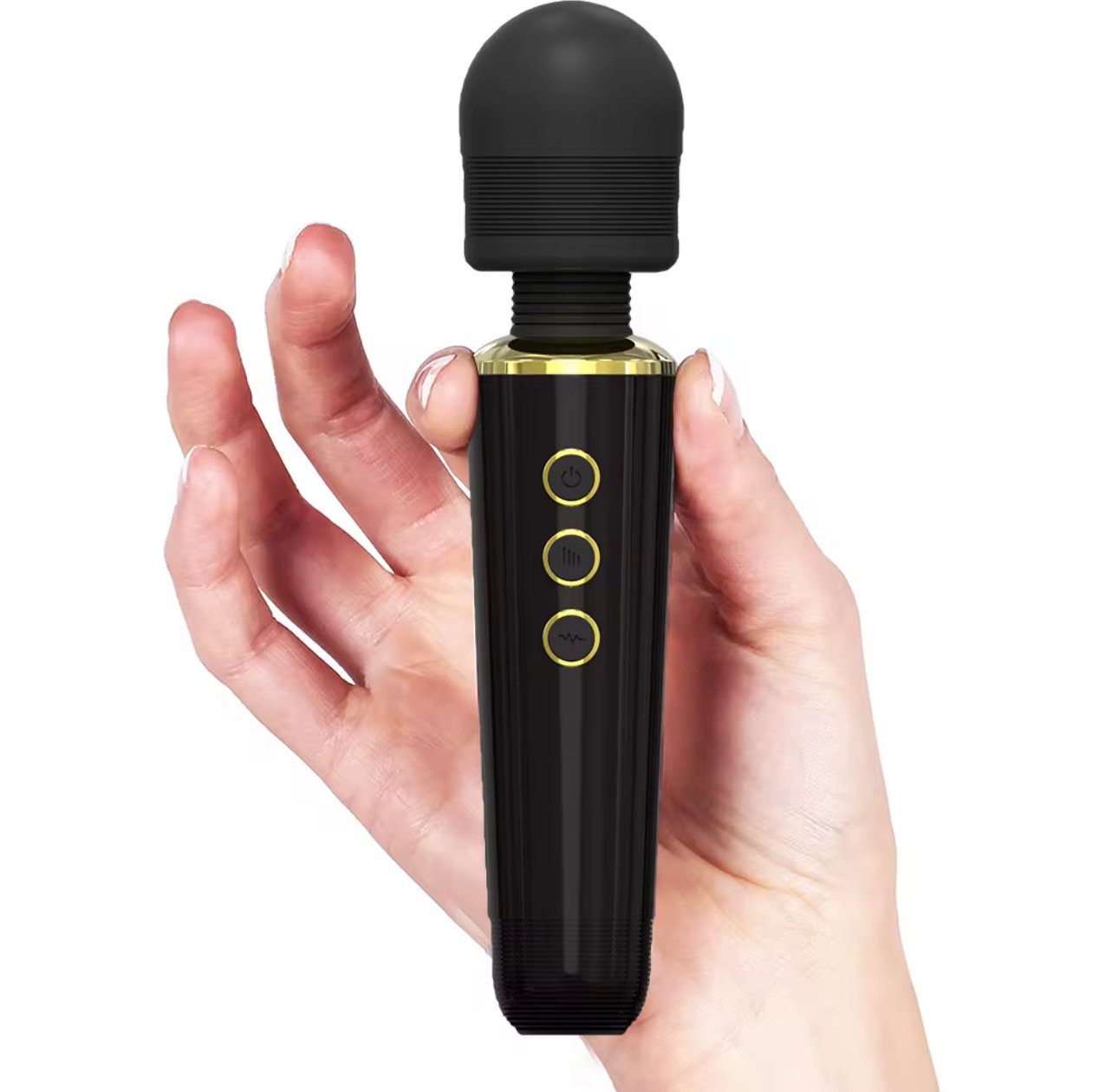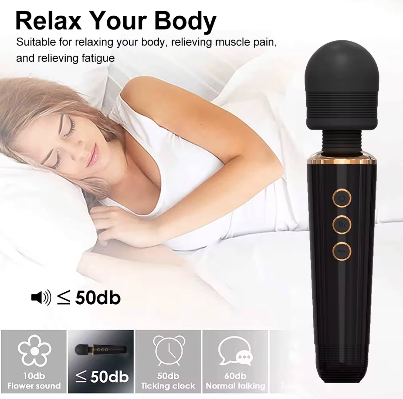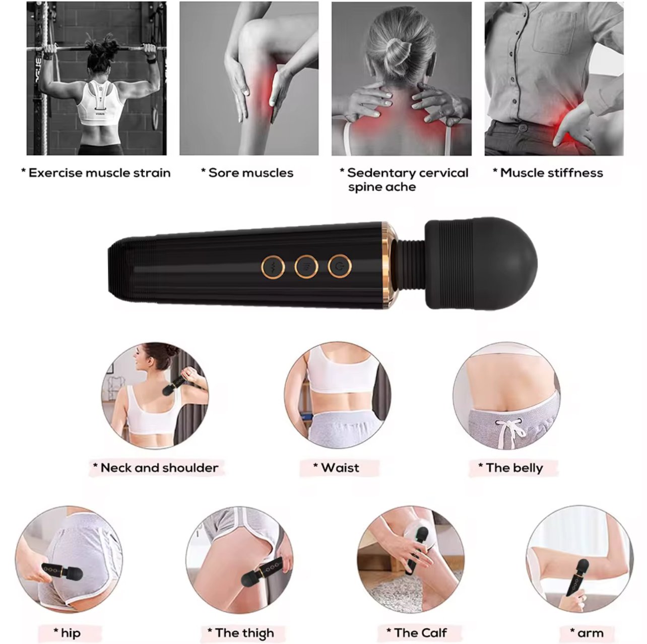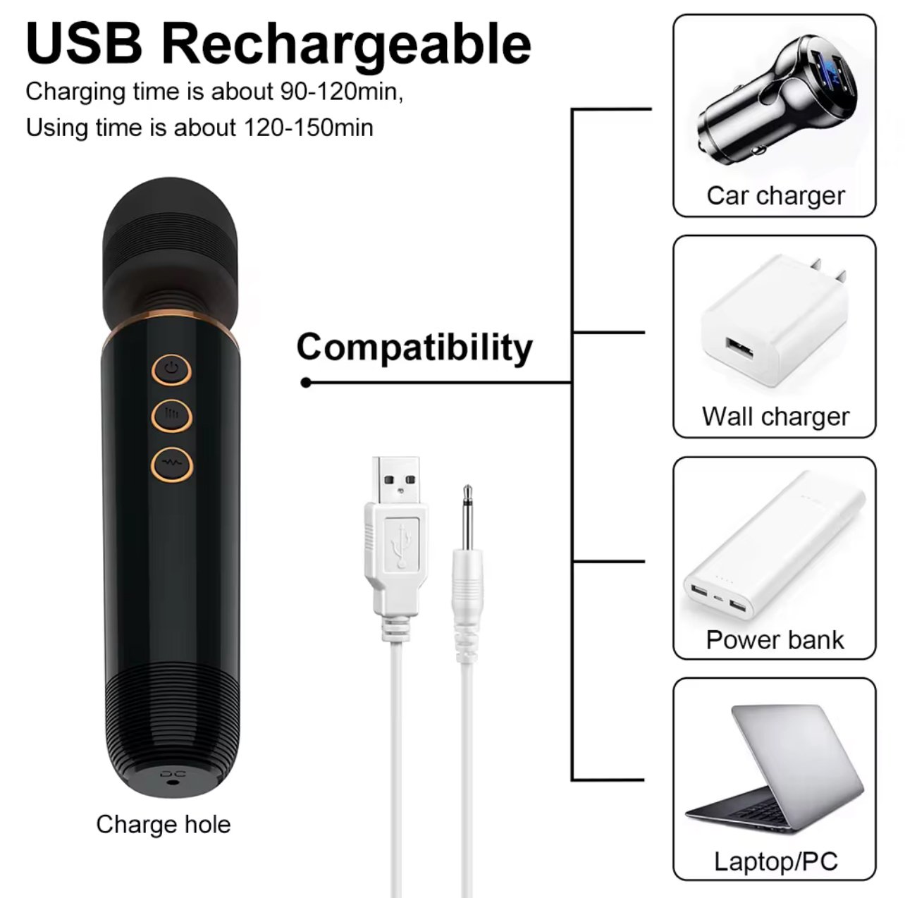 Enhance your relaxation routine with this sleek USB Rechargeable Massage Wand, designed to soothe muscle pain and relieve fatigue. Featuring a stylish black and gold finish, this versatile massager offers: