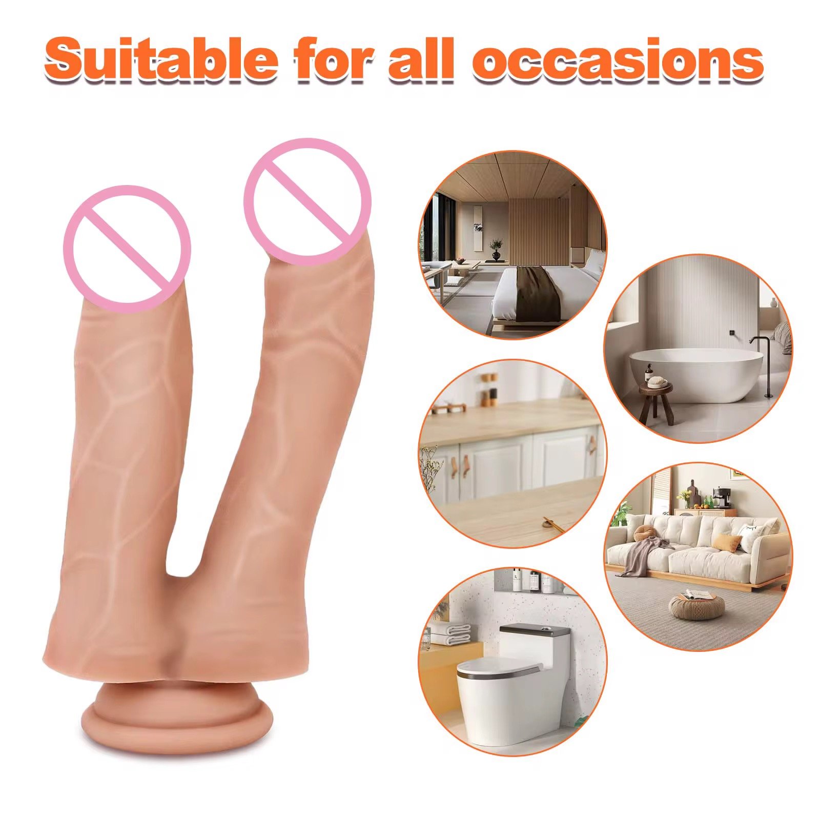 • Lifelike Design – Dual realistic penis shafts with veined textures and flared heads for authentic feel; soft, flexible silicone bends comfortably for custom angles.