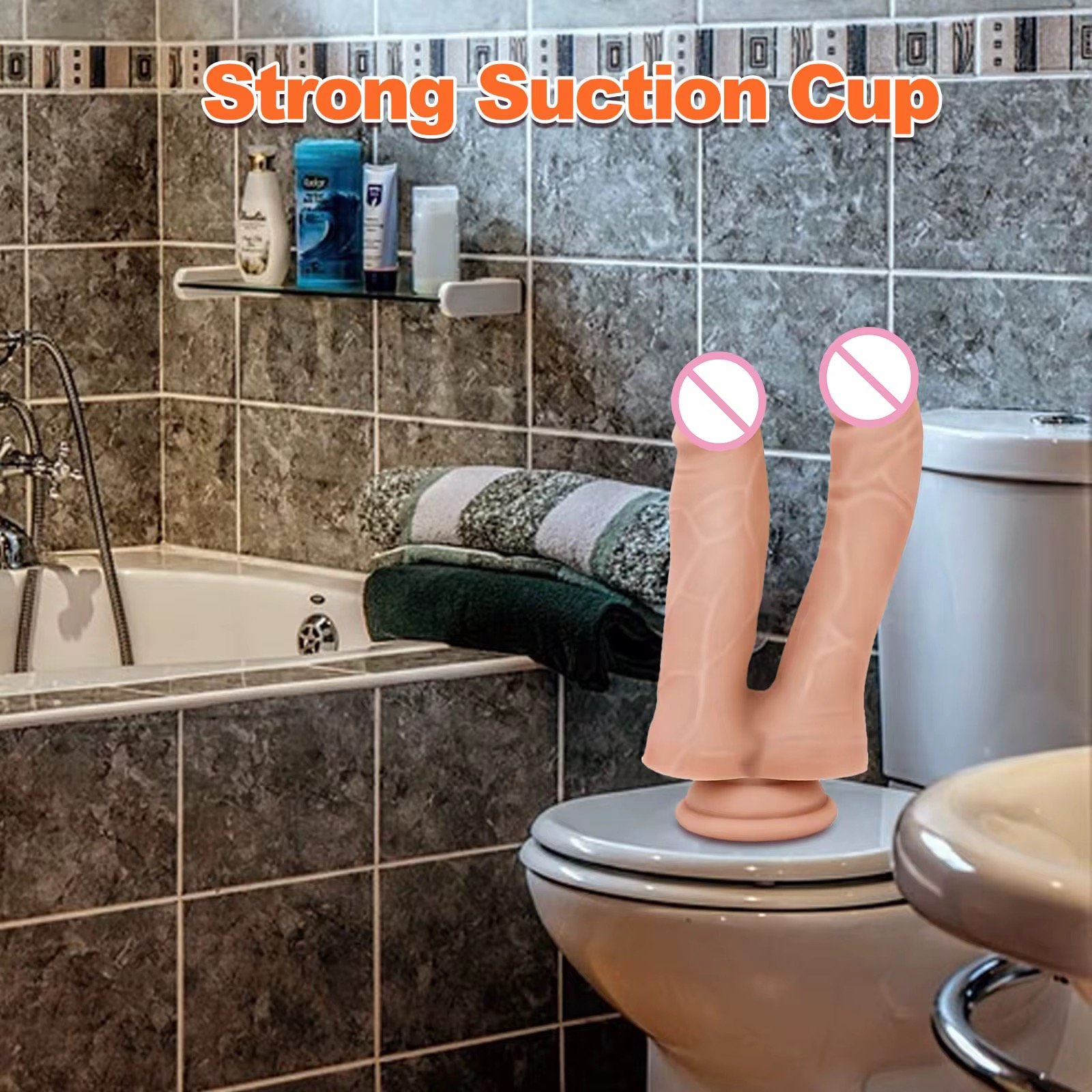 Realistic Double Ended Dildo – 15.8cm U-Shaped Flexible Silicone Penis with Suction Cup – G-Spot & Vaginal Stimulation Toy
