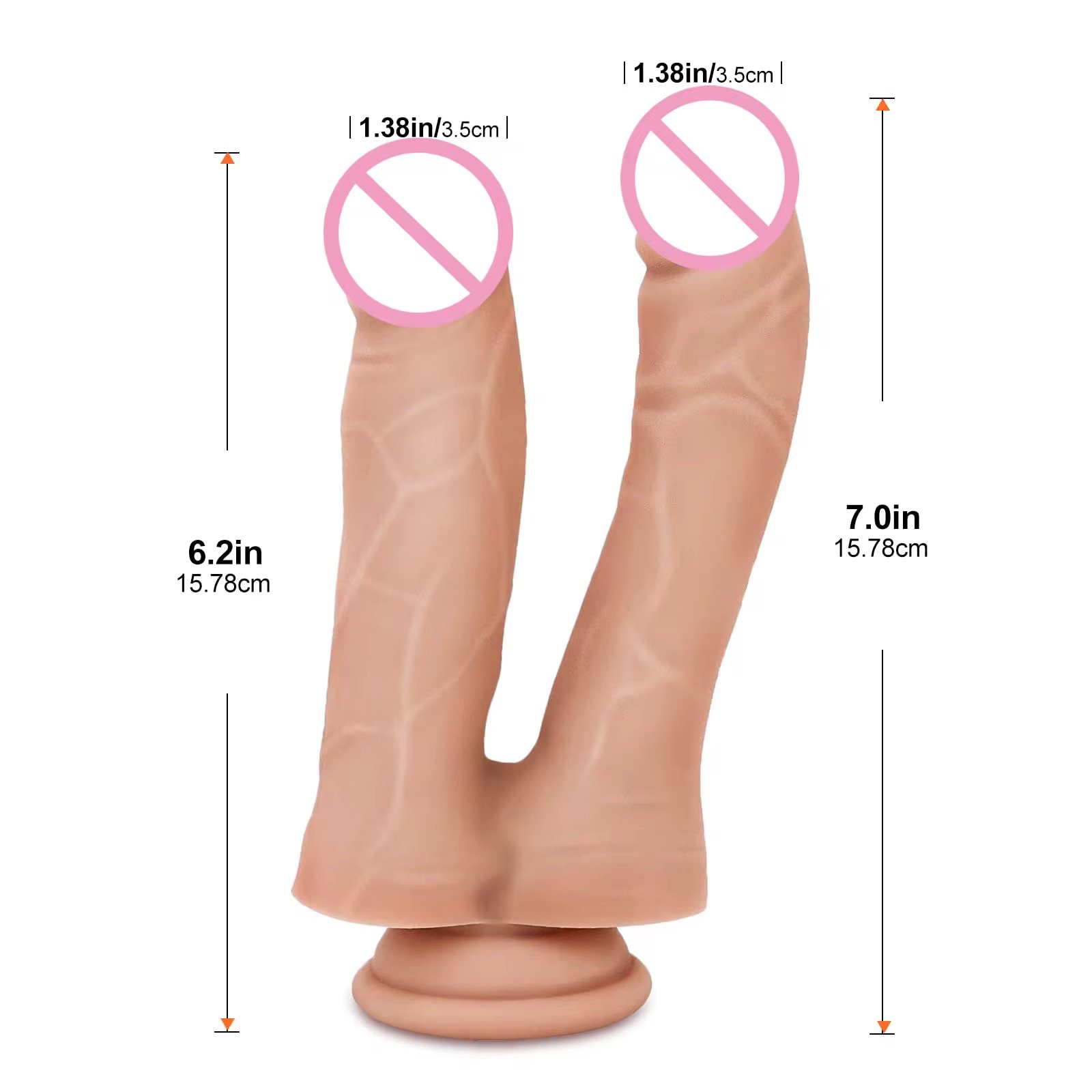 Realistic Double Ended Dildo 15.8cm (6.22inches) U-Shaped Suction Cup Penis Sex Toy.